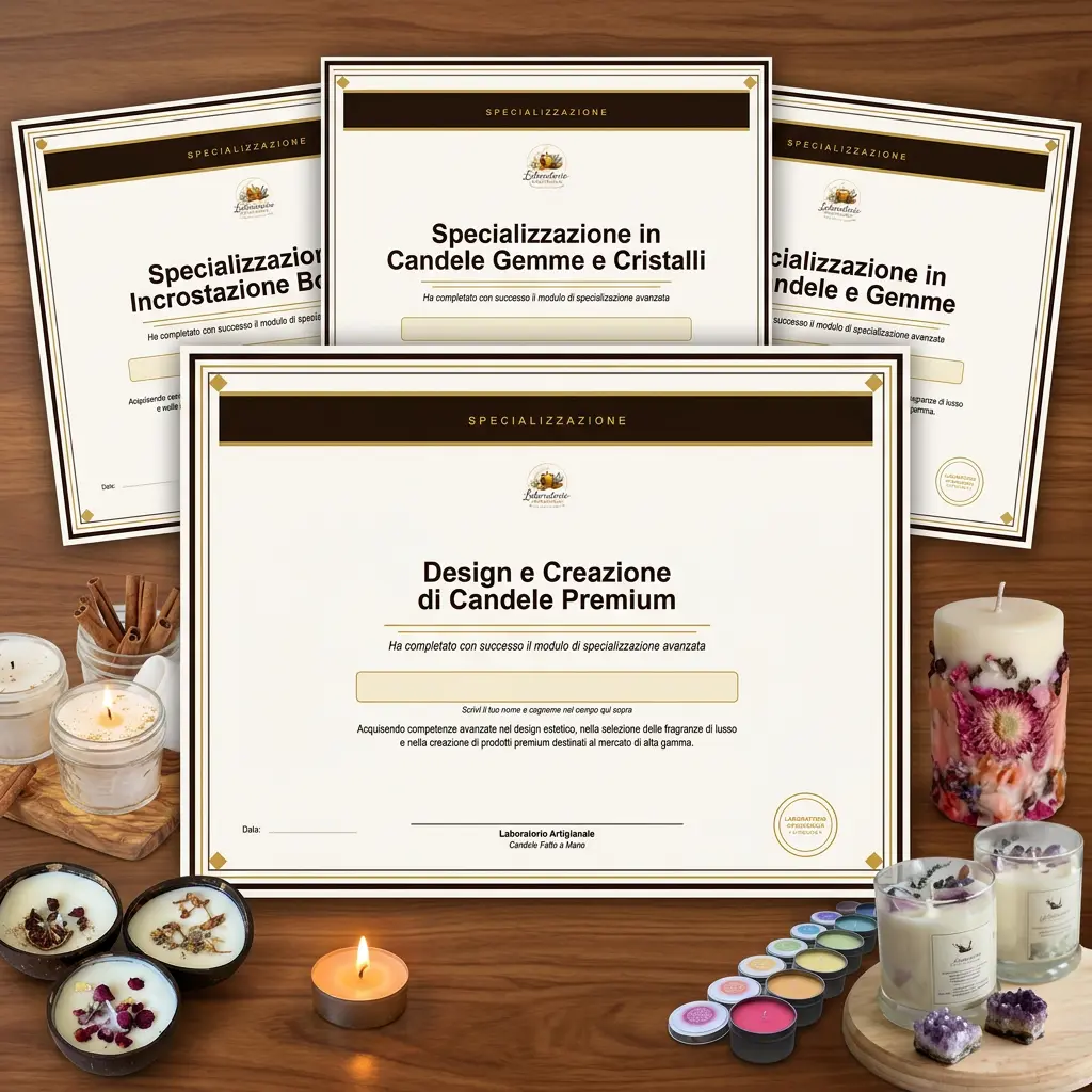 3 Certificati Ufficiali inclusi — al completamento del percorso ricevi documentazione reale della tua formazione artigianale.