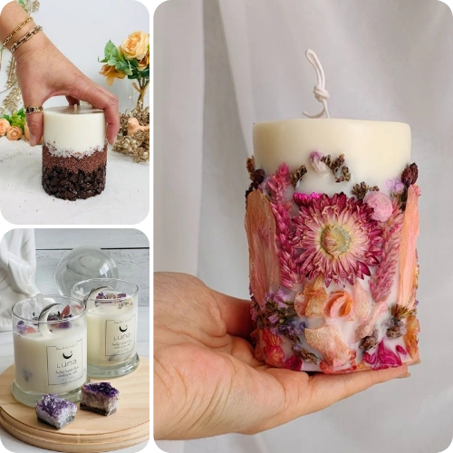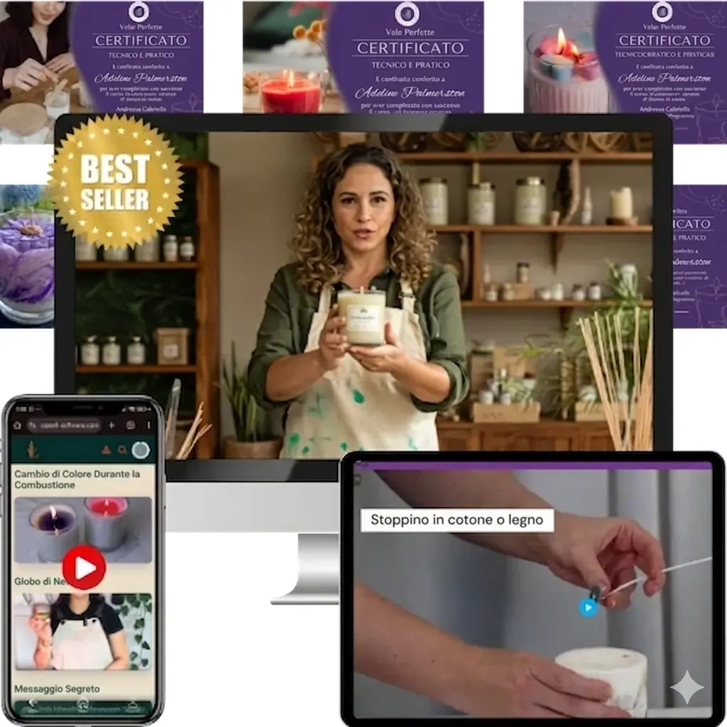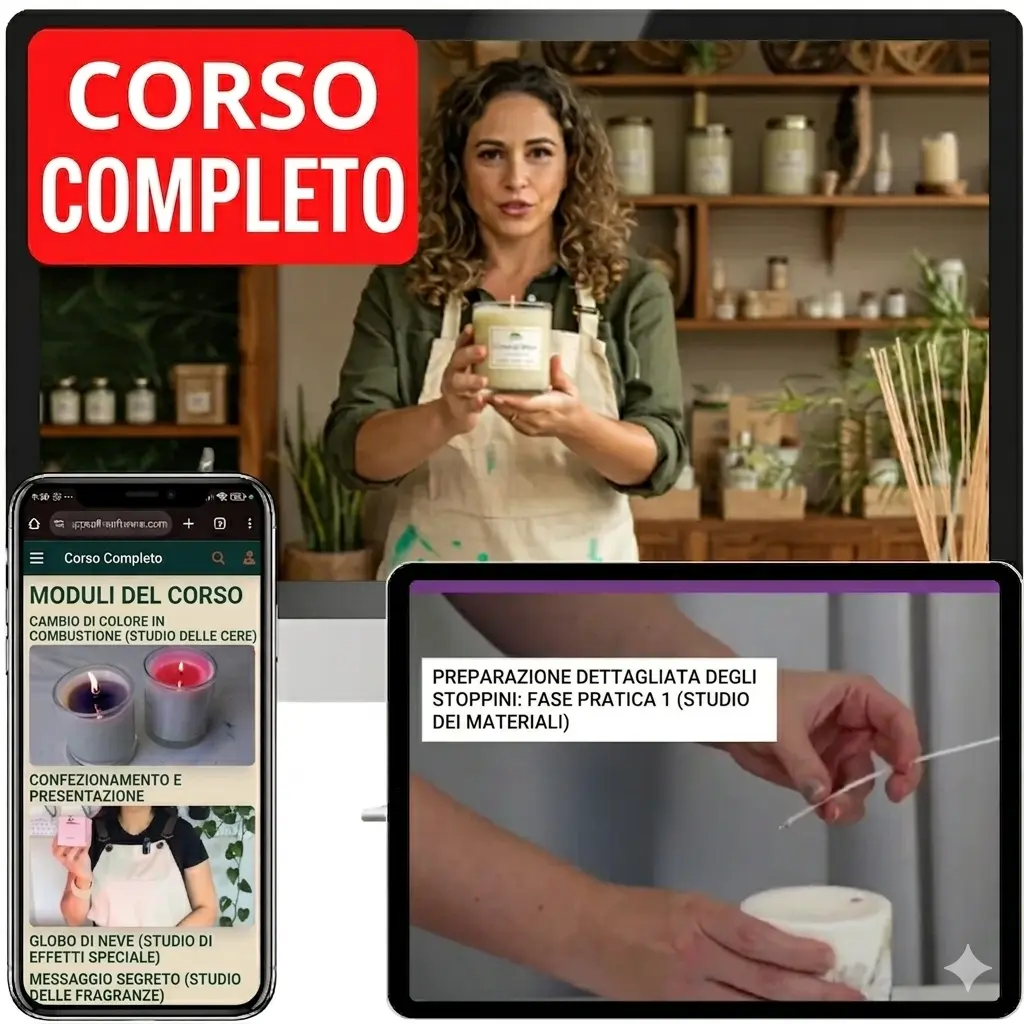 Formule testate per candele aromatiche, decorative, naturali e creative. Ogni ricetta include ingredienti, dosi e consigli di presentazione.